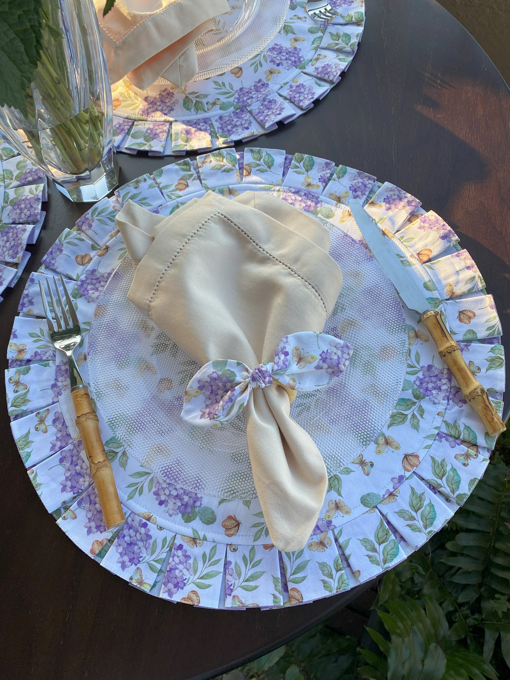 Elevate your dining table with our Double Face Hydrangea Placemat. Made from 100% cotton and measuring 16" in diameter, this placemat features a charming hydrangea design on both sides, offering versatility and style to your table decor. Whether you're hosting a casual brunch or a formal dinner, this placemat adds a touch of elegance and beauty to any occasion.